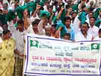 ನೂರಾರು ರೈತರು ಹಸಿರು ಟವೆಲ್ ಧರಿಸಿ, ಸರ್ಕಾರದ ವಿರುದ್ಧ ಘೋಷಣೆ ಕೂಗಿದರು. ಹೊಸಪೇಟೆಯ ರೋಟರಿ ವೃತ್ತದಲ್ಲಿ ರಸ್ತೆತಡೆ ನಡೆಸುವಾಗ ಮಳೆ ಸುರಿಯಿತು. ತಹಶೀಲ್ದಾರ್ ಪಿ.ಎಸ್.ಮಂಜುನಾಥ ಸ್ಥಳಕ್ಕೆ ಆಗಮಿಸಿ ಮಳೆಯಲ್ಲೇ ಮನವಿ ಸ್ವೀಕರಿಸಿದರು.
