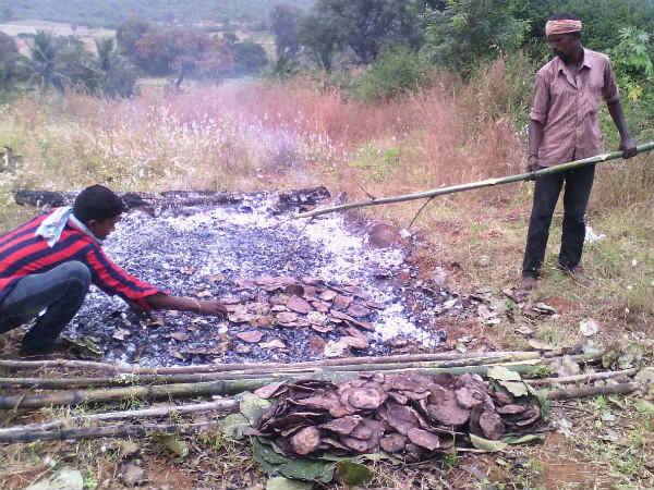 ಗ್ರಾಮದ ಜನರು ತಾವು ತೆಗೆದಿಟ್ಟ ಧಾನ್ಯದಿಂದ ಹಿಟ್ಟು ತಯಾರಿಸಿಕೊಂಡು ಹಬ್ಬ ನಡೆಯುವ ಕೌಡಿಹಳ್ಳ ಗ್ರಾಮದ ಕಾಡಂಚಿನ ನಂದಿಕಂಬದ ಗುಡ್ಡೆ ಕುಂಬೇಶ್ವರ ದೇವಾಲಯದ ಬಳಿಗೆ ಬರುತ್ತಾರೆ. ಒಂದೆಡೆ ಬೆಳಗ್ಗಿನಿಂದಲೇ ಸೌದೆ ಸಂಗ್ರಹಿಸುವ ಗಂಡಸರು ಎಲ್ಲವನ್ನೂ ರಾಶಿ ಹಾಕಿ ಉರಿಸಿ ಕೆಂಡ ತಯಾರಿಸುತ್ತಾರೆ. ಬಳಿಕ ಹಿಟ್ಟನ್ನು ಮುತ್ತುಗದ ಎಲೆ ಬಳಸಿ ತಟ್ಟಿ ರೊಟ್ಟಿ ಮಾಡಿ ನಂತರ ಕೆಂಡದ ಮೇಲಿಟ್ಟು ಬೇಯಿಸುತ್ತಾರೆ.