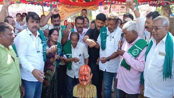 ಮಂಡ್ಯದಲ್ಲಿ ರೈತ ಮುಖಂಡರಿಂದ ಬಸವರಾಜ ಬೊಮ್ಮಾಯಿ ಪುತ್ಥಳಿಗೆ ರಕ್ತದಲ್ಲಿ ಅಭಿಷೇಕ