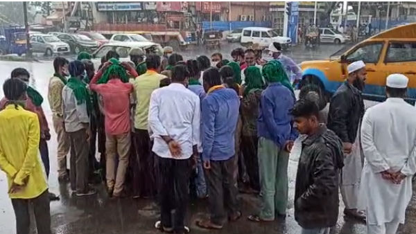 ಮಳೆಯಲ್ಲೇ "ಭಾರತ್ ಬಂದ್' ಬೆಂಬಲಿಸಿ ರೈತ ಸಂಘಟನೆಗಳಿಂದ ಪ್ರತಿಭಟನೆ