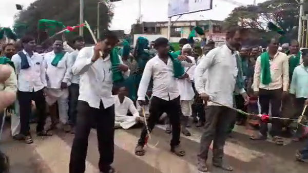 ನೆರೆ ಪರಿಹಾರ ಕೋರಿ ಬೆಳಗಾವಿ ರೈತರ ಬಾರುಕೋಲು ಚಳವಳಿ