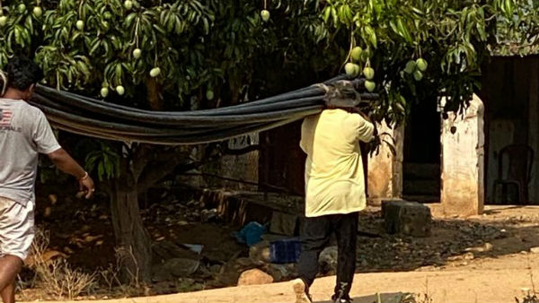 ರಮೇಶ್ ಕುಮಾರ್ ಅವರು ಕೋಲಾರದಲ್ಲಿನ ತಮ್ಮ ತೋಟದಲ್ಲಿ ಕೆಲಸ ಮಾಡುವ ಮೂಲಕ ಲಾಕ್ ಡೌನ್ ಕಾಲ ಕಳೆಯುತ್ತಿದ್ದಾರೆ. ಶ್ರೀನಿವಾಸಪುರ ತಾಲೂಕಿನ ಅಡ್ಡಗಲ್ ಗ್ರಾಮದಲ್ಲಿರುವ ತಮ್ಮ ಮಾವಿನ ತೋಟದಲ್ಲಿ ಸಸಿಗಳಿಗೆ ನೀರು ಹಾಯಿಸಲು ವ್ಯವಸ್ಥೆ ನಡೆಸುತ್ತಿದ್ದಾರೆ. ಇದಕ್ಕೆ ತಾವೇ ಹೆಗಲ ಮೇಲೆ ಪೈಪ್ ಗಳನ್ನು ಹೊತ್ತುಕೊಂಡು ಸಾಗಿದ್ದಾರೆ.