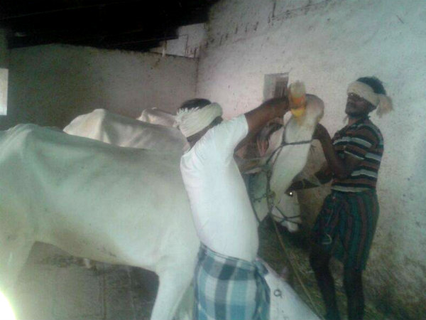 ಕಾರಹುಣ್ಣಿಮೆ: ಎತ್ತುಗಳಿಗೆ ಇದೇನು ಮಾಡ್ತಿದ್ದಾರೆ ನೋಡಿ!