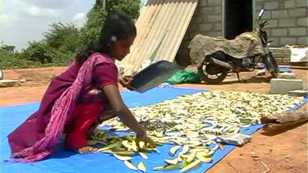 ಕೋಲಾರದ ಮಾವಿನ ಕಣಜ ಎಂದೇ ಪ್ರಸಿದ್ಧಿ ಪಡೆದಿರುವ ಶ್ರೀನಿವಾಸಪುರದಲ್ಲಿ ಮಾವಿನ ಸೀಸನ್ ಆರಂಭಗೊಳ್ಳುತ್ತಿದ್ದಂತೆ ಹೀಗೊಂದು ಸಣ್ಣ ಉದ್ಯಮವೂ ಸದ್ದಿಲ್ಲದೇ ನಡೆಯುತ್ತದೆ. ಬಿರುಗಾಳಿ, ಮಳೆಗೆ ಉದುರಿ ಬಿದ್ದಿರುವ ರಾಶಿ ರಾಶಿ ಮಾವಿನ ಕಾಯಿಗಳನ್ನು ಆರಿಸಿ ತಂದು ಕತ್ತರಿಸಿ ಒಣಗಿಸಿ ಅವುಗಳಿಂದ ರುಚಿಕರ ಉತ್ಪನ್ನಗಳನ್ನು ತಯಾರಿಸುವ ಕೆಲಸ ಮಾಡುತ್ತವೆ ಕೆಲವು ಕುಟುಂಬಗಳು.