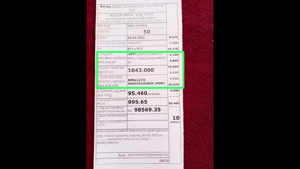 ರೇಷ್ಮೆ ಗೂಡಿನ ದರ ಸರಾಸರಿ ಕಳೆದ ವರ್ಷಕ್ಕಿಂತ ಮೂರು ಪಟ್ಟು ಹೆಚ್ಚಾಗಿದೆ. 2020-21ನೇ ಸಾಲಿನಲ್ಲಿ ಪ್ರತಿ ಕೆಜಿ ರೇಷ್ಮೆ ಗೂಡಿಗೆ ಸರಾಸರಿ 300 ರೂಪಾಯಿ ಇತ್ತು. 2021 ಸಾಲಿನ ನವೆಂಬರ್- ಡಿಸೆಂಬರ್ ತಿಂಗಳಿನಲ್ಲಿ 700-800 ರೂ.ನಷ್ಟಿತ್ತು. ಆದರೆ ಇಂದು 1043 ರೂ.ಗೆ ಮಾರಾಟವಾಗುವ ಮೂಲಕ ದಾಖಲೆ ಸೃಷ್ಟಿಸಿದೆ.