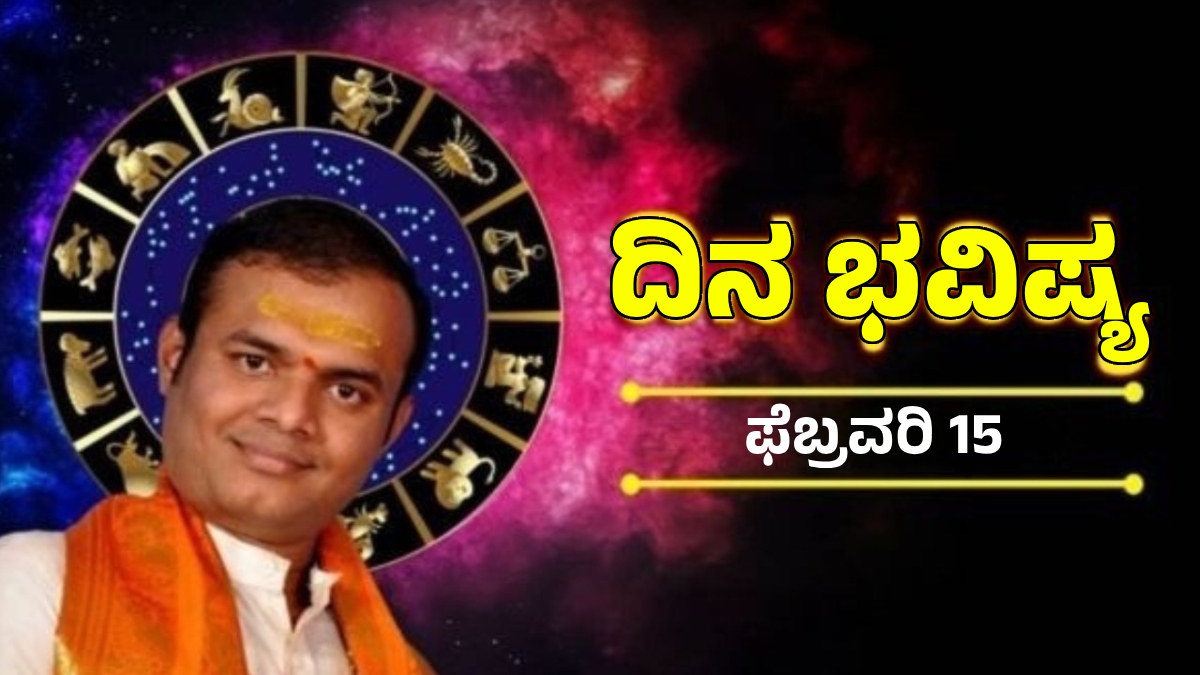 Horoscope February 15: ಫೆಬ್ರವರಿ 15ರ ದ್ವಾದಶ ರಾಶಿಗಳ ಗೋಚಾರ ಫಲದ ಹೇಗಿದೆ ಎಂಬ ಸಂಪೂರ್ಣ ವಿವರ ಇಲ್ಲಿದೆ. ಇದು ವೈದಿಕ ಜ್ಯೋತಿಷ್ಯ ಕ್ರಮದಲ್ಲಿ ಲೆಕ್ಕ ಹಾಕಿ ಬರೆದಿರುವ ದಿನ ಭವಿಷ್ಯವಾಗಿದೆ. ರಾಹುಕಾಲ ಬೆಳಗ್ಗೆ 4.30 ರಿಂದ 6:00. ಇಂದಿನ ಭಾನುವಾರವು (ಫೆ.15) ಮೇಷದಿಂದ ಮೀನ ರಾಶಿಯವರೆಗೆ ಯಾವ ರಾಶಿಯವರಿಗೆ ಹೇಗಿದೆ, ಫಲಾಫಲಗಳ ಮಾಹಿತಿ ತಿಳಿಯಿರಿ: ಜ್ಯೋತಿಷಿ ಪಂಡಿತ್ ವಿಠ್ಠಲ್ ಭಟ್ ಅವರ ಬರಹ ಇಲ್ಲಿದೆ.