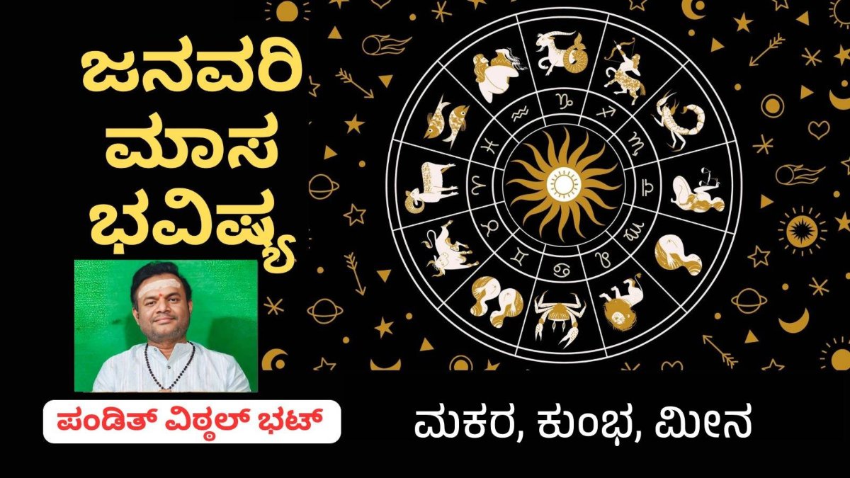 ಹೊಸ ಕ್ಯಾಲೆಂಡರ್ ವರ್ಷದ ಮೊದಲ ತಿಂಗಳಾದ ಜನವರಿಯಲ್ಲಿ ಮಕರ, ಕುಂಭ ಮತ್ತು ಮೀನ ರಾಶಿಗಳ ಫಲಾಫಲಗಳು ಹೇಗಿರುತ್ತವೆ ಎನ್ನುವ ಮಾಹಿತಿ ಇಲ್ಲಿದೆ. ವೈದಿಕ ಜ್ಯೋತಿಷ್ಯದ ಲೆಕ್ಕಾಚಾರದಂತೆ ಈ ಫಲಗಳ ವಿವರಗಳನ್ನು ಖ್ಯಾತ ಜ್ಯೋತಿಷಿ ಪಂಡಿತ್ ವಿಠ್ಠಲ್ ಭಟ್ ಅವರು ನೀಡಿದ್ದಾರೆ. ಎಲ್ಲ ರಾಶಿಗಳ ದಿನ ಭವಿಷ್ಯ, ವಾರ ಭವಿಷ್ಯ ಮತ್ತು ಮಾಸ ಭವಿಷ್ಯಗಳು ಒನ್ ಇಂಡಿಯಾ ಕನ್ನಡ ಜಾಲತಾಣದಲ್ಲಿ ಲಭ್ಯ.