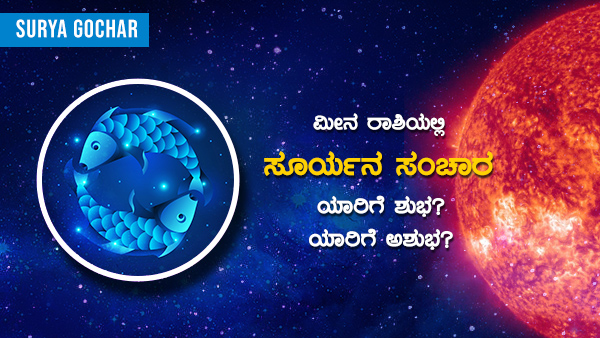 ಮಾರ್ಚ್ 15 ರಂದು ಮೀನ ರಾಶಿಯಲ್ಲಿ ಸೂರ್ಯ ಸಂಚರಿಸಲಿದೆ. ಎಲ್ಲಾ ರಾಶಿಯವರ ದೈನಂದಿನ ಜೀವನದಲ್ಲಿ ಇದು ಬದಲಾವಣೆಗಳನ್ನು ತರುತ್ತದೆ. ಸೂರ್ಯನು ಗ್ರಹಗಳ ರಾಜ. ಜೊತೆಗೆ ಇದು ವೈದಿಕ ಜ್ಯೋತಿಷ್ಯದ ಪ್ರಕಾರ ಸ್ಥಳೀಯರ ಆತ್ಮ. ಇದನ್ನು ತಂದೆಯ ಕಾರಕ ಗ್ರಹ ಎಂದೂ ಕರೆಯುತ್ತಾರೆ. ಬೆಂಕಿ(ಸೂರ್ಯ) ಮತ್ತು ನೀರಿನ(ಮೀನ) ಈ ಸಂಯೋಜನೆಯು ಮಾರ್ಚ್ 15,2022 ರಂದು 12.31 ಕ್ಕೆ ಸಂಭವಿಸುತ್ತದೆ ಮತ್ತು ಅದು ಮುಂದಿನ ರಾಶಿಗೆ ಚಲಿಸುವವರೆಗೆ ಇಲ್ಲಿಯೇ ಇರುತ್ತದೆ ಮತ್ತು ಅದು ಏಪ್ರಿಲ್ 14 2022 ರಂದು ಬೆಳಿಗ್ಗೆ 8.56 ಕ್ಕೆ ಮೇಷ ರಾಶಿಯಲ್ಲಿ ಸಂಚರಿಸಲಿದೆ.