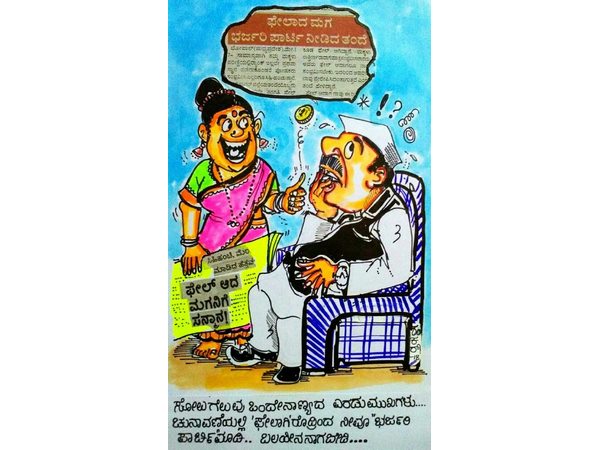 ಕಾಫಿ ಮಾರಿ ದುಡಿಮೆ ಮಾಡುತ್ತಿರುವ ಶಂಕರ್ ಕಾರ್ಟೂನಿಸ್ಟ್ ಅವರಿಗೆ ವ್ಯಂಗ್ಯಚಿತ್ರ ಬರೆಯುವುದು ಪ್ರವೃತ್ತಿ. ವಕ್ರ ರೇಖೆಗಳ ಮೂಲಕವೇ ಸಮಾಜದ ಡೊಂಕನ್ನು, ರಾಜಕಾರಣಿಗಳ ಕೊಂಕನ್ನು ತೋರಿಸುವ ಈ ಅರ್ಥಗರ್ಭಿತ ವ್ಯಂಗ್ಯಚಿತ್ರ ನಿಮಗಾಗಿ ಇಲ್ಲಿದೆ.