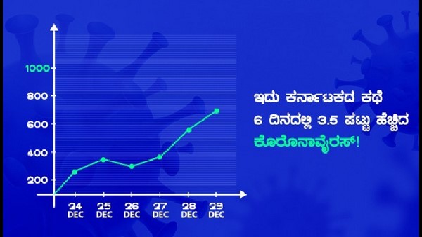 ರಾಜ್ಯದಲ್ಲಿ ಕ್ರಿಸ್ ಮಸ್ ಹಬ್ಬಕ್ಕೂ ಮೊದಲು ಅಂದರೆ ಡಿಸೆಂಬರ್ 24ರಂದು 200 ರಿಂದ 300ರ ಆಸುಪಾಸಿನಲ್ಲಿ ಕೊರೊನಾವೈರಸ್ ಪ್ರಕರಣಗಳ ಸಂಖ್ಯೆ 29ರ ಹೊತ್ತಿಗೆ 700ರ ಗಡಿ ದಾಟಿದೆ. ಕಳೆದ ಆರೇಳು ದಿನಗಳಲ್ಲಿ ಕೊವಿಡ್-19 ಸೋಂಕಿತರ ಸಂಖ್ಯೆಯಲ್ಲಿ ಮೂರೂವರೆ ಪಟ್ಟು ಹೆಚ್ಚಳವಾಗಿರುವುದು ಪರಿಸ್ಥಿತಿಯ ಬೆಳವಣಿಗೆಗೆ ಹಿಡಿದ ಕೈಗನ್ನಡಿ ಆಗಿದೆ. ರಾಜ್ಯದಲ್ಲಿ ದಿನದಿಂದ ದಿನಕ್ಕೆ ಹೇಗೆ ಸೋಂಕಿತ ಪ್ರಕರಣಗಳ ಸಂಖ್ಯೆ ಏರಿಕೆ ಆಯಿತು ಎಂಬುದಕ್ಕೆ ಈ ಕೆಳಗಿನ ಚಿತ್ರವೇ ಸಾಕ್ಷಿ ಆಗಿದೆ.