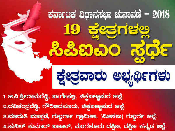 ಕರ್ನಾಟಕ ವಿಧಾನಸಭೆ ಚುನಾವಣೆ : ಸಿಪಿಐಎಂ ಅಭ್ಯರ್ಥಿಗಳ ಪಟ್ಟಿ