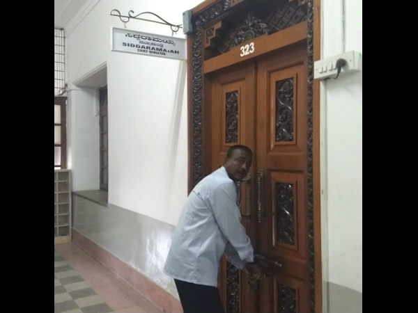 ಸಿದ್ದರಾಮಯ್ಯ ಅವರ ಮುಖ್ಯಮಂತ್ರಿ ಕಚೇರಿಗೆ ಸಿಬ್ಬಂದಿಯೊಬ್ಬರು ಬೀಗ ಹಾಕುತ್ತಿರುವ ಚಿತ್ರ ಸಾಮಾಜಿಕ ಜಾಲತಾಣದಲ್ಲಿ ಭಾರಿ ವೈರಲ್ ಆಗಿದೆ. ಬಿಜೆಪಿ ಮುನ್ನಡೆ ಸಾಧಿಸಿದ್ದಕ್ಕೂ ಈ ಚಿತ್ರ ಹರಿದಾಡುತ್ತಿರುವುದಕ್ಕೂ ಸರಿಯಾಗಿ ಹೊಂದಾಣಿಕೆ ಆಗಿದೆ.