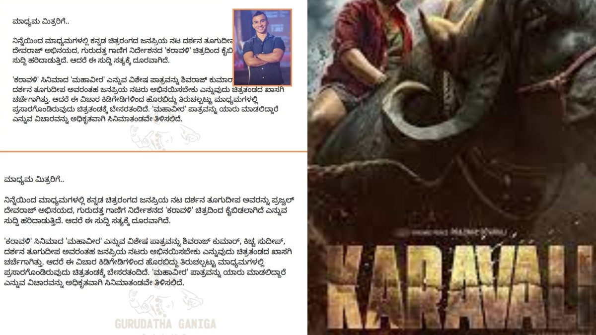 ಸುದೀಪ್-ಶಿವಣ್ಣ ಮತ್ತು ದರ್ಶನ್ ಅವರಲ್ಲಿ ಒಬ್ಬರು ನಮ್ಮ ಚಿತ್ರದ ಮಹಾವೀರ ಪಾತ್ರವನ್ನು ಮಾಡಿದರೆ ಚೆನ್ನಾಗಿರುತ್ತದೆ. ಆದ್ದರಿಂದ ನಮ್ಮ ತಂಡದಲ್ಲಿಯೇ ಚರ್ಚೆಯಾಗಿದೆ. ಆದರೆ, ಇನ್ನೂ ಹಂತಿಮವಾಗಿಲ್ಲ. ಸುಮ್ಮನೆ ಏನೋ ಒಂದು ಹರಿದಾಡುತ್ತಿದೆ. ಇದರಿಂದ ನಮಗೆ ಬೇಸರವಾಗಿದೆ. ಇದು ಸತ್ಯಕ್ಕೆ ದೂರವಾದ ಮಾತಾಗಿದೆ ಎಂದು ಡೈರೆಕ್ಟರ್ ಗುರುದತ್ ಗಾಣಿಗ ಲಿಖಿತ ರೂಪದಲ್ಲಿಯೇ ಹೇಳಿಕೊಂಡಿದ್ದಾರೆ. ಇನ್ನು ಈ ಒಂದು ವಿಚಾರಕ್ಕೆ ಸಂಬಂಧಿಸಿದಂತೆ ಅಧಿಕೃತ ಮಾಹಿತಿಯನ್ನು ನಾವೇ ಕೊಡುತ್ತೇವೆ ಅಂತಲೂ ಹೇಳಿಕೊಳ್ಳುವ ಮೂಲಕ ಸ್ಪಷ್ಟನೆ ನೀಡಿದ್ದಾರೆ.