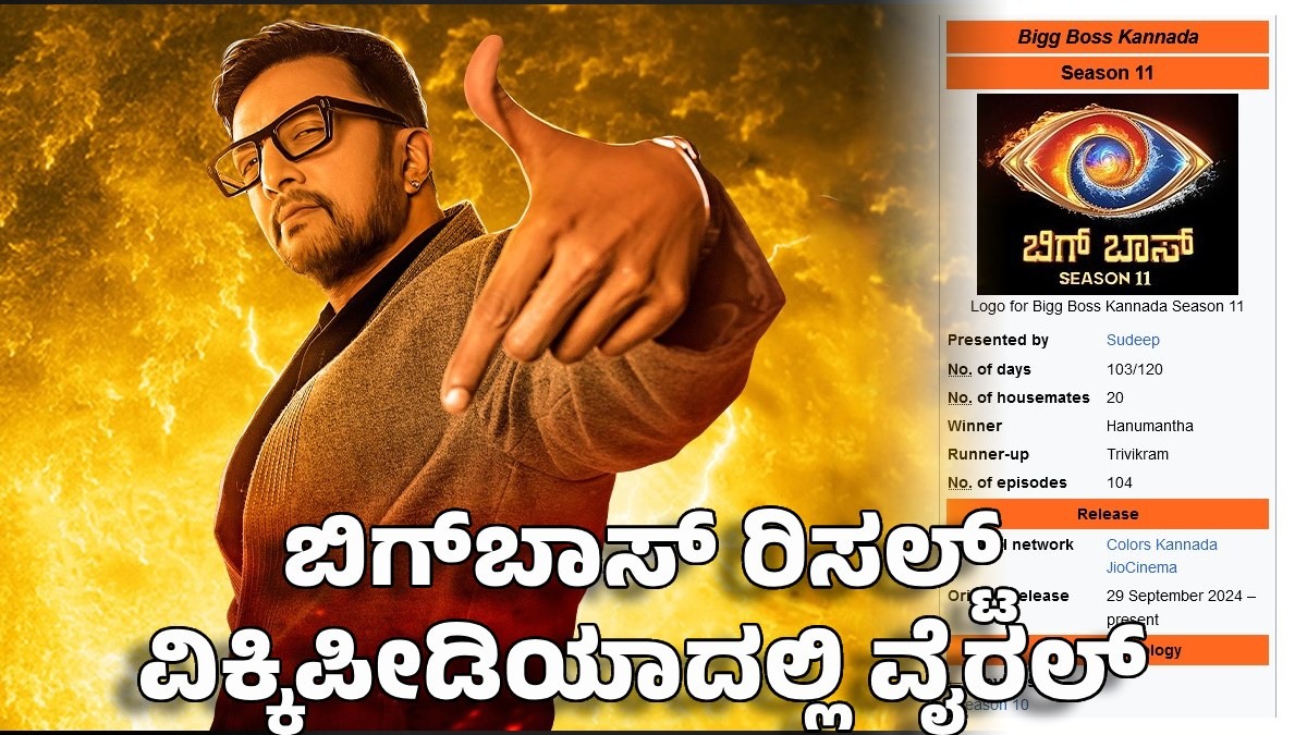 ಈ ಮಾಹಿತಿ ಫೇಕ್ ಆಗಿರಬಹುದಾ? ಅಥವಾ ನಿಜಾನಾ? ಯಾವುದು ತಿಳಿಯದೇ ಬಿಗ್ಬಾಸ್ ವೀಕ್ಷಕರು ಗೊಂದಲಗೊಂಡಿದ್ದಾರೆ. ವಿಕ್ಕಿಪೀಡಿಯಾದಲ್ಲಿ ಬಿಗ್ಬಾಸ್ ಕನ್ನಡ ಸೀಸನ್ 11ರ ವಿನ್ನರ ಹನುಮಂತ ಹಾಗೂ ರನ್ನರ್ ಅಪ್ ತ್ರಿವಿಕ್ರಮ್ ಎನ್ನುವ ಮಾಹಿತಿ ನೀಡಲಾಗಿದೆ. ಇದರೊಂದಿಗೆ ಸೀಸನ್ ಆರಂಭವಾದ ದಿನಾಂಕ ಹೋಸ್ಟರ್ ಹೆಸರು, ಎಪಿಸೋಡ್ ಸಂಖ್ಯೆ ಹೀಗೆ ಎಲ್ಲಾ ಮಾಹಿತಿಯನ್ನು ನೀಡಲಾಗಿದೆ.