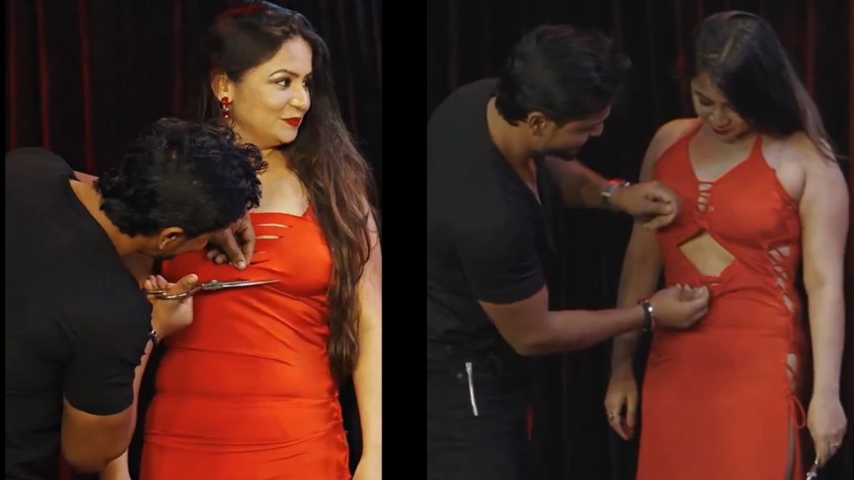 ಪ್ರಿಯಾಂಕಾ ಹಲ್ದಾರ್ ಎಂಬ ಮಹಿಳೆಯು ವೇದಿಕೆ ಮೇಲೆಯೇ ತನ್ನ ಎದೆ ಮೇಲಿದ್ದ ಬಟ್ಟೆಯನ್ನು ಯಾವುದೇ ಮುಜುಗರವಿಲ್ಲದೆ ಪರಪುರುಷನೊಂದಿಗೆ ಕತ್ತರಿಸಿಕೊಂಡಿದ್ದಾರೆ. ಈ ವಿಡಿಯೋ ಸೋಶಿಯಲ್ ಮೀಡಿಯಾದಲ್ಲಿ ವೈರಲ್ ಆಗಿದೆ. ಜೊತೆಗೆ ಟ್ರೋಲ್ ಕೂಡ ಆಗುತ್ತಿದೆ. ಇಷ್ಟಕ್ಕೂ ಈ ವಿಡಿಯೋಗೆ ವಿರೋಧ ವ್ಯಕ್ತವಾಗಲು ಕಾರಣ ಹೀಗಿವೆ..