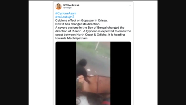 ಅಸಾನಿ ಚಂಡಮಾರುತ ಆಂಧ್ರಪ್ರದೇಶದ ಕರಾವಳಿಯಲ್ಲಿ ದುರ್ಬಲಗೊಂಡಿತು ಎಂದು ಭಾರತ ಹವಾಮಾನ ಇಲಾಖೆಯು ಮೇ 12 ರಂದು ಹೇಳಿತ್ತು. ಆದರೆ ಸಾಮಾಜಿಕ ಮಾಧ್ಯಮದಲ್ಲಿ ಅದರಿಂದ ಉಂಟಾದ ಹಾನಿಯ ವಿಡಿಯೊಗಳು ತುಂಬಿಕೊಂಡಿವೆ. ಅಂತಹ ವಿಡಿಯೋ ಒಂದರಲ್ಲಿ ಗಾಳಿಯ ವೇಗಕ್ಕೆ ಉಪಾಹಾರದ ಪೀಠೋಪಕರಣಗಳು ಹಾರಿ ಹೋಗುವ ದೃಶ್ಯವಿದೆ. ಈ ವಿಡಿಯೋವನ್ನು ಟ್ವಿಟರ್ನಲ್ಲಿ ಹಂಚಿಕೊಳ್ಳಲಾಗಿದೆ.