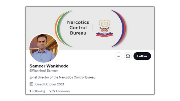 ಹೀಗೊಂದು ಖಾತೆ ಟ್ವೀಟರ್ನಲ್ಲಿದೆ. "ಜೋನಲ್ ಡೈರೆಕ್ಟರ್ @ನಾರ್ಕೋಟಿಕ್ಸ್ ಬ್ಯೂರೋ" (Zonal Director @narcoticsbureau)ಎಂದು ಉಲ್ಲೇಖಿಸಿದ ಈ ಖಾತೆ ನಿಜವಾಗಲೂ ಎನ್ಸಿಬಿ ಅಧಿಕಾರಿ ಸಮೀರ್ ವಾಂಖೆಡೆದಲ್ಲ. ಬದಲಿಗೆ ಈ ಖಾತೆಯ ಮೂಲ ಹೆಸರನ್ನು ಬದಲಿಸಲಾಗಿದೆ ಎಂದು ತನಿಖೆಯಿಂದ ಬಯಲಾಗಿದೆ. ಹೆಸರು ಬದಲಾಗುವ ಮುನ್ನ ಈ ಖಾತೆ 14,000 ಕ್ಕೂ ಹೆಚ್ಚು ಅನುಯಾಯಿಗಳನ್ನು ಗಳಿಸಿತ್ತು.