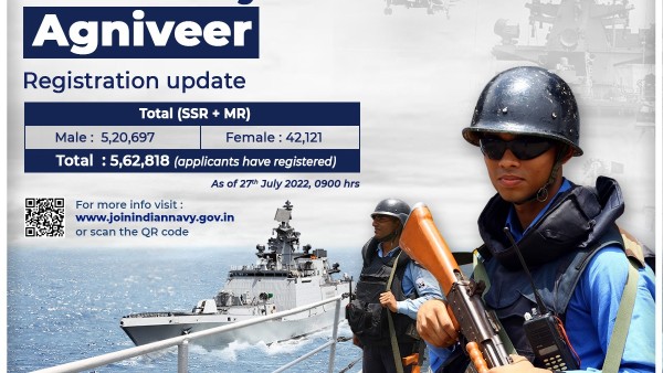 ಭಾರತೀಯ ನೌಕಾಪಡೆಯಲ್ಲಿ ಹೆಮ್ಮೆಯಿಂದ ಕೆಲಸ ಮಾಡಲು ಬಯಸುವ ಹುಡುಗಿಯರಿಗೆ ಸಿಹಿ ಸುದ್ದಿ ಇದೆ. ಈ ವರ್ಷ ನೌಕಾಪಡೆಯಲ್ಲಿ 3 ಸಾವಿರ 'ಅಗ್ನಿವೀರ್' ನೌಕಾಪಡೆಯಲ್ಲಿ ನೇಮಿಸಿಕೊಳ್ಳಲಾಗುತ್ತಿದೆ. ಇವರಲ್ಲಿ 20% ಅಂದರೆ ಸುಮಾರು 600 ಮಹಿಳೆಯರು ಅಗ್ನಿವೀರ್ ಆಗಿರುತ್ತಾರೆ.