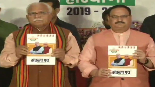 ಚಂಡೀಗಢ, ಅಕ್ಟೋಬರ್ 13: ಭಾರತೀಯ ಜನತಾ ಪಕ್ಷ(ಬಿಜೆಪಿ) ಭಾನುವಾರದಂದು ಹರ್ಯಾಣ ರಾಜ್ಯಕ್ಕಾಗಿ ಚುನಾವಣಾ ಪ್ರಣಾಳಿಕೆಯನ್ನು ಬಿಡುಗಡೆ ಮಾಡಿದೆ. ಮುಖ್ಯಮಂತ್ರಿ ಮನೋಹರ್ ಲಾಲ್ ಕಟ್ಟರ್, ಬಿಜೆಪಿ ಕಾರ್ಯಕಾರಿ ಅಧ್ಯಕ್ಷ ಜೆಪಿ ನಡ್ಡಾ ಹಾಗೂ ಇನ್ನಿತರ ಪ್ರಮುಖ ಮುಖಂಡರ ಸಮ್ಮುಖದಲ್ಲಿ ಚುನಾವಣಾ ಪ್ರಣಾಳಿಕೆಯನ್ನು ಪ್ರಕಟಿಸಲಾಯಿತು.