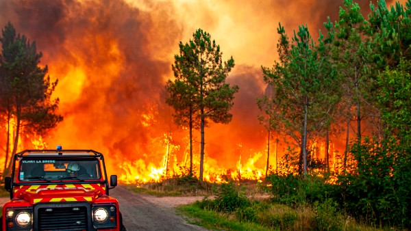 10,000 ಹೆಕ್ಟೇರ್ ಗಿಂತಲೂ ಹೆಚ್ಚು ಪ್ರದೇಶವನ್ನು ಕಬಳಿಸಿದ ಕಾಡಿನ ಬೆಂಕಿಯನ್ನು ನಿಯಂತ್ರಿಸಲು ಫ್ರಾನ್ಸ್ನ ನೈಋತ್ಯ ಗಿರೊಂಡೆ ಪ್ರದೇಶದ ಕರಾವಳಿ ಪಟ್ಟಣವಾದ ಅರ್ಕಾಚೋನ್ನಲ್ಲಿ 1,200 ಅಗ್ನಿಶಾಮಕ ದಳದ ಸಿಬ್ಬಂದಿ ಮತ್ತು ಐದು ವಿಮಾನಗಳು ಸತತವಾಗಿ ಕಾರ್ಯಾಚರಣೆ ಮಾಡುತ್ತಿವೆ.