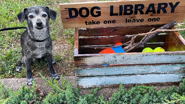 made a dog library for our neighborhood. but instead of books, it’s filled with toys and sticks. i hope everyone likes it. #spreadjoy #dogsoftwitter #dogtwitter #seniordog #sundayvibes pic.twitter.com/MTVJiOhXpB