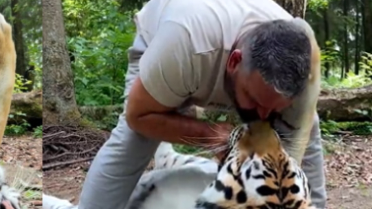 ಈ ವೀಡಿಯೊವನ್ನು Instagram ನ @gulyaet_tigr ಖಾತೆಯಲ್ಲಿ ಹಂಚಿಕೊಳ್ಳಲಾಗಿದೆ. ಇದರಲ್ಲಿ ವ್ಯಕ್ತಿಯೊಬ್ಬ ಹುಲಿಯನ್ನು ಪ್ರೀತಿಯಿಂದ ಮುದ್ದಿಸುತ್ತಿರುವುದನ್ನು ಕಾಣಬಹುದು. ಅದು ಹುಲಿಯಲ್ಲ ತನ್ನ ಮಗುವೇನೋ ಎಂಬಂತೆ ವ್ಯಕ್ತಿ ಎದುರಿನಿಂದ ಹುಲಿಯ ಬಾಯಿಗೆ ಮುತ್ತಿಡುತ್ತಿದ್ದಾನೆ.