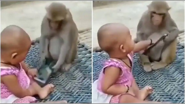 ಜನರು ಸಾಮಾಜಿಕ ಮಾಧ್ಯಮದಲ್ಲಿ ಪ್ರಾಣಿಗಳ ವೀಡಿಯೊಗಳನ್ನು ವೀಕ್ಷಿಸಲು ಇಷ್ಟಪಡುತ್ತಾರೆ. ಯಾಕೆಂದರೆ ಬಹುತೇಕ ಪ್ರಾಣಿಗಳು ಅರಿವಿಲ್ಲದೆ ಮಾಡುವ ಚೇಷ್ಟೆಗಳು ನೋಡುಗರ ಗಮನ ಸೆಳೆದು ಮನಸ್ಸಿಗೆ ಮುದ ನೀಡುತ್ತವೆ. ಆದರೂ ಕೋತಿಯಿಂದ ತನಗೆ ಆಗುವ ಹಾನಿಯ ಬಗ್ಗೆಮಗು ತಿಳಿದಿಲ್ಲ ಎಂದು ತಮಾಷೆಯ ವೀಡಿಯೊ ಸ್ಪಷ್ಟವಾಗಿ ತಿಳಿಸುತ್ತದೆ. ಆದರೆ ಅದೃಷ್ಟವಶಾತ್ ಕೋತಿ ಮಗುವಿಗೆ ಹಾನಿ ಮಾಡಲಿಲ್ಲ. ವಿಡಿಯೋದ ಕೊನೆಯಲ್ಲಿ ಕೋತಿಯೇ ಕೈಯಲ್ಲಿ ಫೋನ್ ಹಿಡಿದುಕೊಂಡಿರುವುದು ಕಂಡುಬಂದಿದೆ.