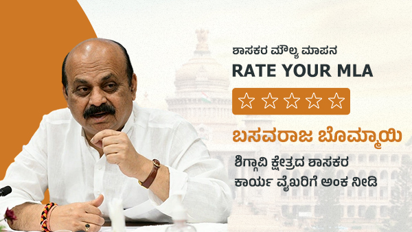 ಈ ಪುಟದಲ್ಲಿ ನೀವು ಹಾವೇರಿ ಜಿಲ್ಲೆಯ ಶಿಗ್ಗಾವಿ ಕ್ಷೇತ್ರದ ಬಿಜೆಪಿ ಶಾಸಕ ಬಸವರಾಜ ಬೊಮ್ಮಾಯಿಗೆ ವೋಟ್ ಮಾಡಬಹುದಾಗಿದೆ. ಪುಟದ ಕೊನೆಯಲ್ಲಿ ನೀವು ಎಷ್ಟು ಅಂಕ ನೀಡಿದ್ದೀರಿ? ಎಂಬ ಸರಾಸರಿ ತೋರಿಸುತ್ತದೆ.