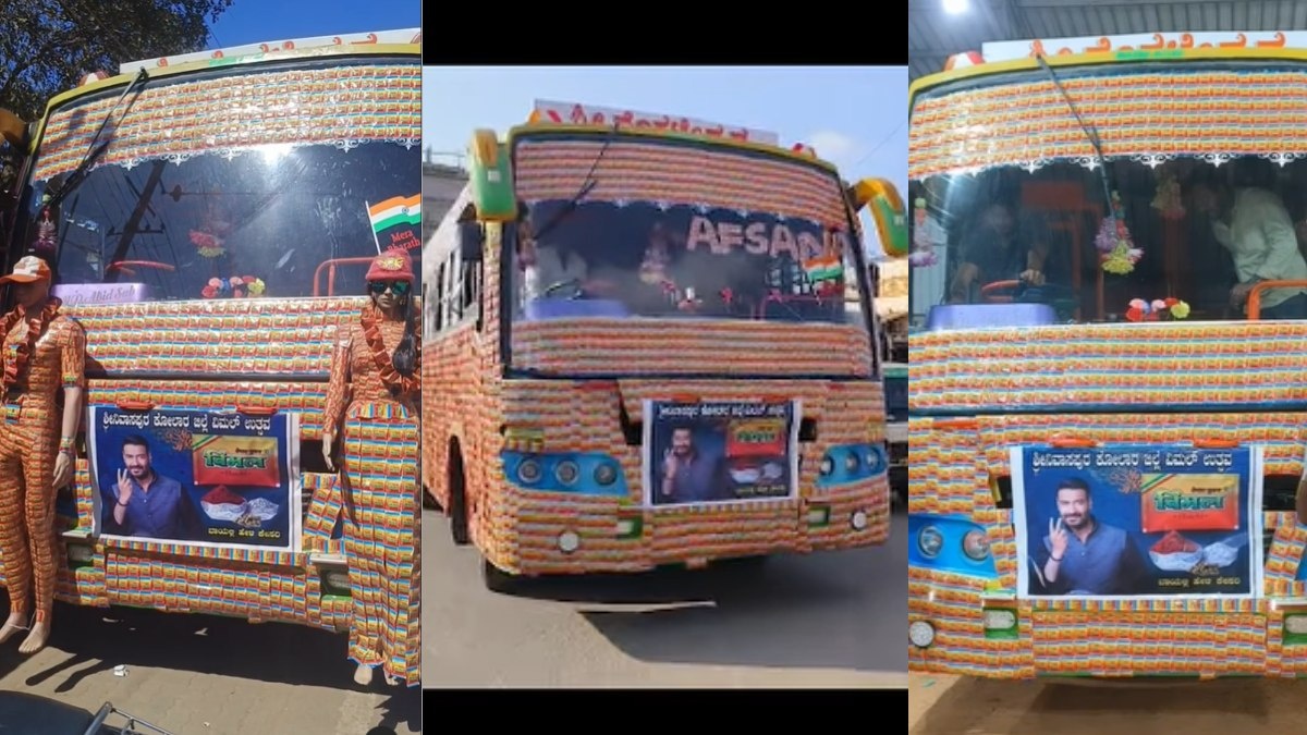 ಕೋಲಾರ ಜಿಲ್ಲೆಯ ಶ್ರೀನಿವಾಸಪುರದ ವಿಮಲ್ ಪ್ರೇಮಿಗಳು ಇಂತಹ ದೊಡ್ಡ ಸಾಹಸಕ್ಕೆ ಕೈ ಹಾಕಿದ್ದಾರೆ. super_star_mr_nizam (Mohammed Nizam) ಇನ್ಸ್ಟಾಗ್ರಾಮ್ ಖಾತೆಯಲ್ಲಿ ಕೆಲವು ತಿಂಗಳ ಹಿಂದೆ ವಿಮಲ್ ಪ್ಯಾಕ್ಗಳನ್ನು ಬಳಸಿ ಬಸ್ ಅನ್ನು ಅಲಂಕರಿಸಿದ ವೀಡಿಯೊವನ್ನು ಪೋಸ್ಟ್ ಮಾಡಲಾಗಿದೆ. ಬಸ್ಸಿನ ವೀಡಿಯೊ ಸಕತ್ ವೈರಲ್ ಆಗುತ್ತಿದೆ.