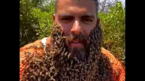 ಮನುಷ್ಯನ ಗಡ್ಡದಲ್ಲಿ ಕುಳಿತ ಸಾವಿರಾರು ಅಪಯಕಾರಿ ಜೇನುನೊಣಗಳು! ವಿಡಿಯೋ ವೈರಲ್