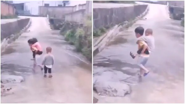 ಅವನು ವಾಸ್ತವವಾಗಿ ಬಾಲಕ. ತನ್ನ ಇಬ್ಬರು ಚಿಕ್ಕ ಒಡಹುಟ್ಟಿದವರನ್ನು ಎತ್ತಿಕೊಂಡು ಕೊಚ್ಚೆಯನ್ನು ದಾಟಿಸುತ್ತಾನೆ. ಕೊಚ್ಚೆಯಲ್ಲಿ ಸಿಕ್ಕಿಹಾಕಿಕೊಳ್ಳದಂತೆ ಅವರನ್ನು ಎತ್ತಿಕೊಂಡು ಒಬ್ಬೊಬ್ಬರಾಗಿ ಮತ್ತೊಂದು ಬದಿಯತ್ತ ಬೆನ್ನ ಮೇಲೆ ಹೊತ್ತುಕೊಂಡು ದಾಟಿಸುತ್ತಾನೆ. ಈ ಮುದ್ದಾದ ವಿಡಿಯೋ ಸಾಮಾಜಿಕ ಜಾಲತಾಣದಲ್ಲಿ ವೈರಲ್ ಆಗಿದೆ.