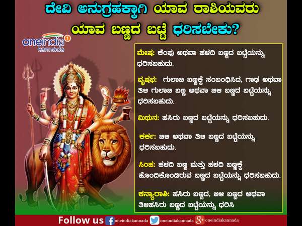 ಮುಂದಿನ ರಾಶಿಗಳಿಗೆ ದೇವಿ ಯಾವ ಬಣ್ಣದಿಂದ ಒಲಿಯುವಳು ಎಂದು ಮುಂದೆ ತಿಳಿದುಕೊಳ್ಳಿ.