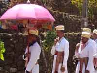 ಇದೇ ವೇಳೆಗೆ ಶ್ವೇತವಸ್ತ್ರಧಾರಿಣಿ ಸ್ತ್ರೀಯರು ಅಕ್ಕಿ, ಹೂ, ದೀಪವಿರುವ ಹರಿವಾಣವನ್ನು ಹೊತ್ತು ಎತ್ತುಪೋರಾಟದೊಂದಿಗೆ ಊರ್ಮಂದ್ಗೆ ಬರುತ್ತಾರೆ. ಅಲ್ಲಿ ಮೂರು ಬಾರಿ ಎತ್ತುಪೋರಾಟ ನಡೆಯುತ್ತದೆಯಲ್ಲದೆ, ಅಶ್ವತ್ಥ ವೃಕ್ಷದ ಮೇಲೆ ಕಟ್ಟಲಾದ ತೆಂಗಿನಕಾಯಿಗೆ ಗುಂಡು ಹಾರಿಸಿ ಕಟ್ಟನ್ನು ಸಡಿಲಿಸಲಾಗುತ್ತದೆ. ಬಳಿಕ ಕೊಳಲನ್ನು ನಿರ್ದಿಷ್ಟ ಸ್ಥಳದಲ್ಲಿ ನುಡಿಸುತ್ತಾ ಬಿದ್ದಿಯಂಡ ಮಾನಿಯತ್ತ ತೆರಳುತ್ತಾರೆ.