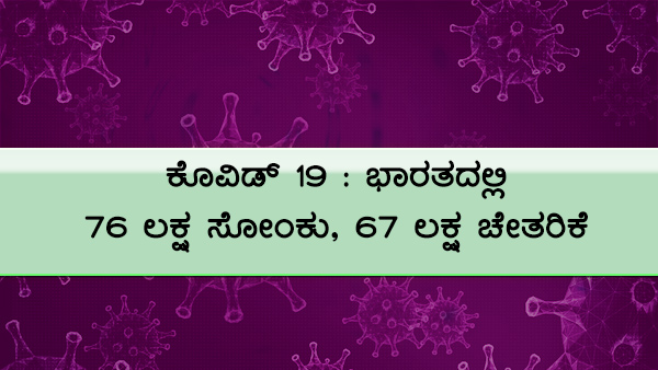 ಕೊವಿಡ್ 19: ಭಾರತದಲ್ಲಿ 76 ಲಕ್ಷ ಕೇಸ್, 67 ಲಕ್ಷ ಚೇತರಿಕೆ
