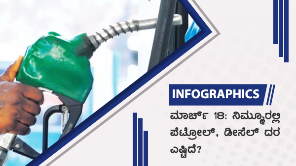 ಬೆಳಗಾವಿಯಿಂದ ಬಳ್ಳಾರಿ ತನಕ ರಾಜ್ಯದ ವಿವಿಧ ನಗರ, ಪಟ್ಟಣ, ಜಿಲ್ಲಾ ಕೇಂದ್ರಗಳಲ್ಲಿನ ಪೆಟ್ರೋಲ್, ಡೀಸೆಲ್ ದರ(ಮಾರ್ಚ್ 18ರಂತೆ) ಪಟ್ಟಿ ಸಚಿತ್ರ ಮಾಹಿತಿ ಇಲ್ಲಿದೆ..