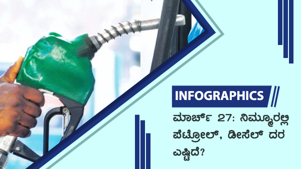 ಮಾರ್ಚ್ 27: ಕರ್ನಾಟಕದ ವಿವಿಧೆಡೆ ಪೆಟ್ರೋಲ್, ಡೀಸೆಲ್ ಬೆಲೆ