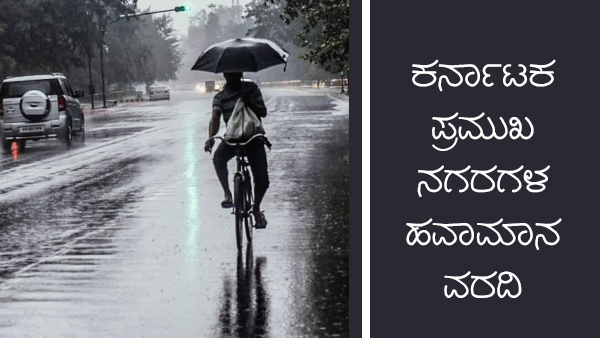 ಬೆಂಗಳೂರು ನಗರದಲ್ಲಿ ಸಾಮಾನ್ಯವಾಗಿ ಮೋಡ ಕವಿಡ ವಾತಾವರಣವಿದ್ದು, ಗುಡುಗು ಸಹಿತ ಮಳೆಯಾಗಿದೆ. ಕೆಲವು ಕಡೆಗಳಲ್ಲಿ ಬೆಳಗಿನ ಜಾವ ಮಂಜು ಮುಜುಕಿನ ವಾತಾವರಣ ನಿರ್ಮಾಣವಾಗಲಿದ್ದು, ಬೆಂಗಳೂರಿನಲ್ಲಿ ಗರಿಷ್ಠ ತಾಪಮಾನ 30 ಡಿಗ್ರಿ ಸೆಲ್ಸಿಯಸ್ ಆಗಿದ್ದರೆ, ಕನಿಷ್ಠ ತಾಪಮಾನ 20 ಡಿಗ್ರಿ ಸೆಲ್ಸಿಯಸ್ ದಾಖಲಾಗಿದೆ. ದಕ್ಷಿಣ ಒಳನಾಡಿನ ಬೆಂಗಳೂರು ನಗರ, ಬೆಂಗಳೂರು ಗ್ರಾಮಾಂತರ, ಚಿಕ್ಕಬಳ್ಳಾಪುರ, ಚಿಕ್ಕಮಗಳೂರು, ಚಿತ್ರದುರ್ಗ, ಹಾಸನ, ಕೊಡಗು, ಕೋಲಾರ, ಮೈಸೂರು, ರಾಮನಗರ, ಶಿವಮೊಗ್ಗ ಮತ್ತು ತುಮಕೂರಿನ ಒಂದೆರೆಡು ಕಡೆಗಳಲ್ಲಿ ಮಳೆಯಾಗಲಿದೆ.