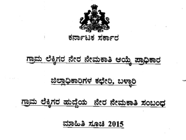ಬಳ್ಳಾರಿ : 61 ಗ್ರಾಮ ಲೆಕ್ಕಿಗರ ಹುದ್ದೆಗಳು ಖಾಲಿ ಇವೆ