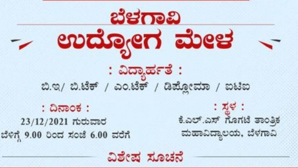 ಬೆಳಗಾವಿ; ಡಿಸೆಂಬರ್ 23ರಂದು ಉದ್ಯೋಗ ಮೇಳ