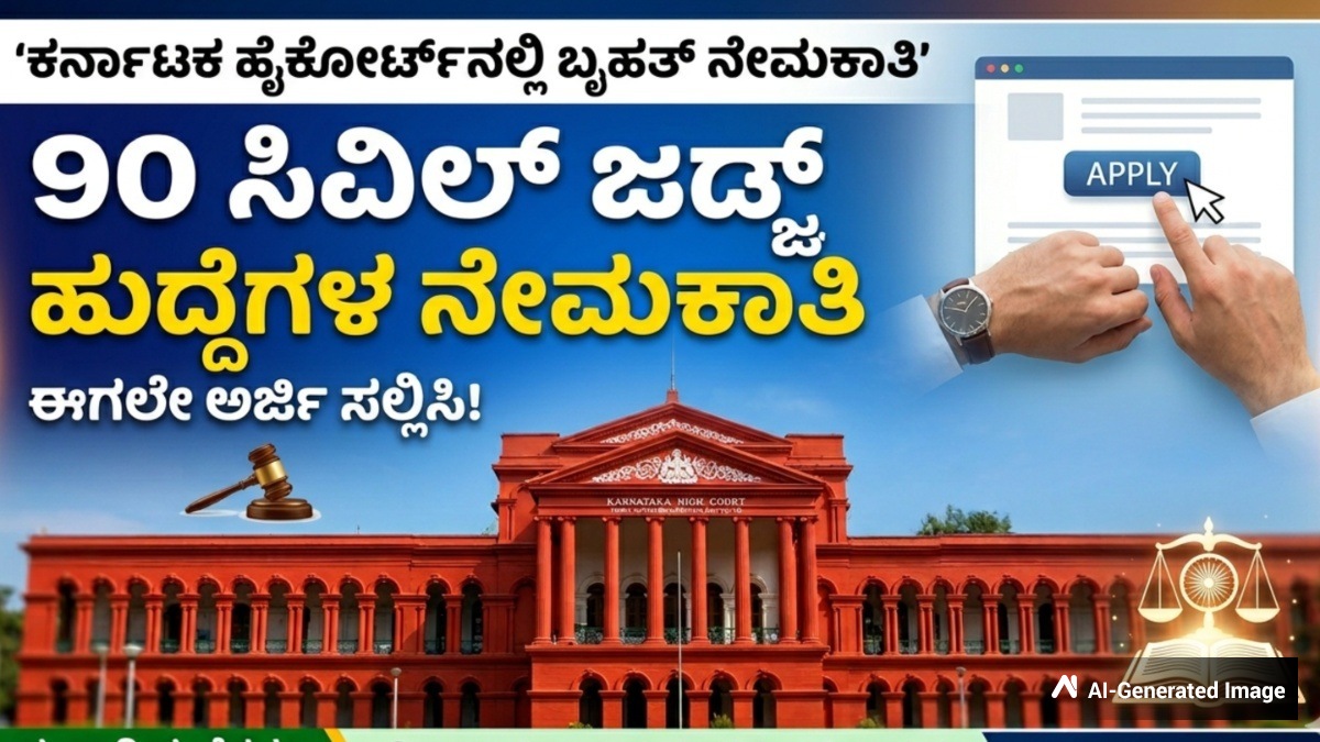 ನ್ಯಾಯಾಂಗ ವ್ಯವಸ್ಥೆಯಲ್ಲಿ ತಮ್ಮ ಭವಿಷ್ಯವನ್ನು ರೂಪಿಸಿಕೊಳ್ಳಲು ಹಂಬಲಿಸುತ್ತಿರುವ ಕಾನೂನು ಪದವೀಧರರಿಗೆ ಇಲ್ಲಿದೆ ಒಂದು ಸುವರ್ಣಾವಕಾಶ. ಕರ್ನಾಟಕದ ಉನ್ನತ ನ್ಯಾಯಾಲಯವಾದ ಹೈಕೋರ್ಟ್, ಖಾಲಿ ಇರುವ ಒಟ್ಟು 90 ಸಿವಿಲ್ ನ್ಯಾಯಾಧೀಶರ ಹುದ್ದೆಗಳನ್ನು ಭರ್ತಿ ಮಾಡಲು ಅಧಿಕೃತ ಅಧಿಸೂಚನೆಯನ್ನು ಹೊರಡಿಸಿದೆ. ಇದು ರಾಜ್ಯದ ಪ್ರತಿಷ್ಠಿತ ನ್ಯಾಯಾಂಗ ವ್ಯವಸ್ಥೆಯ ಭಾಗವಾಗಲು ಬಯಸುವ ಅಭ್ಯರ್ಥಿಗಳಿಗೆ ಅತ್ಯುತ್ತಮ ವೇದಿಕೆಯಾಗಿದ್ದು, ಆಸಕ್ತರು ಆನ್ಲೈನ್ ಮೂಲಕ ತಮ್ಮ ಅರ್ಜಿಗಳನ್ನು ಸಲ್ಲಿಸಬಹುದಾಗಿದೆ.
