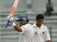 ಟೆಸ್ಟ್ ಜೀವನದಲ್ಲಿ 11ಸಾವಿರ ರನ್ ಗಳನ್ನು ಪೂರೈಸಿ ದಾಖಲೆ ಮೆರೆದ ದ್ರಾವಿಡ್ ದಿನದಾಟದ ಅಂತ್ಯಕ್ಕೆ 177 ರನ್ (27ನೇ ಶತಕ)ಗಳಿಸಿ ಅಜೇಯರಾಗಿ ಉಳಿದಿದ್ದಾರೆ. ಟೆಸ್ಟ್ ಆಟಗಾರರಾಗಿ 20 ವರ್ಷದ ಅನುಭವವುಳ್ಳ ಸಚಿನ್ 12,777 ರನ್ ಗಳೊಂದಿಗೆ ಮುಂದಿದ್ದಾರೆ. ದ್ರಾವಿಡ್ ಜೊತೆ ಇಂದು ಶತಕ ಗಳಿಸಿದ ಧೋನಿ(110 ರನ್),ದಿನದ ಕೊನೆಗೆ ಎಚ್ಚರ ತಪ್ಪಿ ಆಡಿ ಔಟಾದರು. ಇದಕ್ಕೂ ಮುನ್ನ ಅವರು ಟೆಸ್ಟ್ ಜೀವನದಲ್ಲಿ 2 ಸಾವಿರ ರನ್ ಗಳನ್ನು ಪೂರೈಸಿದರು. ದಿನದ ಅಂತ್ಯಕ್ಕೆ ಭಾರತದ ಮೊತ್ತ 385 ಕ್ಕೆ 6. ಹರ್ಭಜನ್ ಸಿಂಗ್ 2 ರನ್ ಗಳಿಸಿ ಆಡುತ್ತಿದ್ದಾರೆ. ಯುವರಾಜ್ ಸಿಂಗ್ 68 ರನ್ ಗಳಿಸಿ ದ್ರಾವಿಡ್ ಗೆ ಉತ್ತಮ ಜತೆಯಾಟ ಮೆರೆದರು.