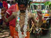 ಭಕ್ತರು ಆಟೋ, ರುಬ್ಬುಗುಂಡು ಮತ್ತು ಕಾರನ್ನು ಎಳೆಯುವಾಗ ತಮ್ಮ ಸಂಪ್ರದಾಯದಂತೆ ತಮಿಳುನಾಡಿನಿಂದ ಆಗಮಿಸಿದ ಡೋಲು ಬಾರಿಸುವವರು ಉತ್ಸವಕ್ಕೆ ಮೆರಗು ನೀಡುವ ರಾಗಗಳನ್ನು ನುಡಿಸುವ ಮೂಲಕ ಭಕ್ತರಲ್ಲಿ ದೈವೀ ಭಾವನೆಗಳನ್ನು ಮೂಡಿಸಿದರು. ಕೆಲವು ಮಹಿಳೆಯರು 7 ಅಡಿಗಳ ಉದ್ದದ ತ್ರಿಸೂಲವನ್ನು ಬಾಯಿಗೆ ಸಿಕ್ಕಿಸಿಕೊಂಡು ದೇವೀ ಆರಾಧನೆ ಮಾಡುತ್ತಿದ್ದರು.