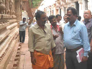 ಆ ನಂತರ ದೇವಸ್ಥಾನದ ಅರ್ಚಕ ಆನಂದ ಸ್ವಾಮಿ, ಅಲ್ಲಿಯ ನಿವಾಸಿ ಶಿಲ್ಪ ಅವರಿಂದ ಗಣಿಗಾರಿಕೆಯ ಕುರಿತು ಮಾಹಿತಿ ಸಂಗ್ರಹ ಮಾಡಿದರು. ದೇವಸ್ಥಾನದ ಗರ್ಭಗುಡಿ, ಕಂಭಗಳು, ನೀರು ಕಾಣದ ಬಾವಿ, ಸ್ಥಳ ಮಹಿಮೆ, ಐತಿಹಾಸಿಕ - ಧಾರ್ಮಿಕ ಶಕ್ತಿಗಳ ಮಾಹಿತಿಗಳನ್ನು ಪಡೆದು, ಗಣಿಗಾರಿಕೆಯಿಂದ ದೇವಸ್ಥಾನದಲ್ಲಿ ಉಂಟಾಗಿರುವ ಬಿರುಕುಗಳನ್ನು ಪರಿಶೀಲಿಸಿ ದಾಖಲಿಸಿಕೊಂಡರು.