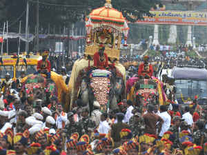 ಮೈಸೂರು ದಸರಾದ ಸಂಭ್ರಮ ನೋಡಲು ಎರಡು ಕಣ್ಣುಗಳು ಸಾಲದಾಗಿವೆ. ಲಕ್ಷ ಲಕ್ಷ ಸಂಖ್ಯೆಯಲ್ಲಿ ನೆರೆದಿರುವ ಜನರು. ಸಂಭ್ರಮ, ಸಡಗರವೇ ಧರೆಗಿಳಿದು ಬಂದಂತೆ ಭಾಸವಾಗುತ್ತಿದೆ. 138 ಕಲಾ ಪ್ರಕಾರಗಳು, 30 ಜಿಲ್ಲೆಗಳ 34 ಸ್ತಬ್ದ ಚಿತ್ರಗಳು ಕಣ್ಣಿಗೆ ಹಬ್ಬ ನೀಡಲು ಆರಂಭಿಸಿವೆ.