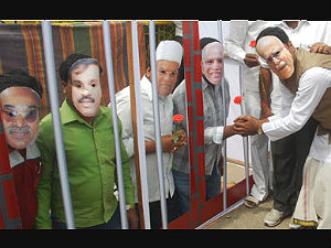 ಕಾರಾಗೃಹದಲ್ಲಿ ಮಾಜಿ ಮುಖ್ಯಮಂತ್ರಿ ಬಿ.ಎಸ್. ಯಡಿಯೂರಪ್ಪ, ಮಾಜಿ ಸಚಿವರಾದ ಕಟ್ಟಾ ಸುಬ್ರಮಣ್ಯ ನಾಯ್ಡು, ಜನಾರ್ದನ ರೆಡ್ಡಿ, ಕೃಷ್ಣಯ್ಯ ಶೆಟ್ಟಿ ಅವರನ್ನು ಬಂಧಿಗಳಂತೆ ತೋರಿಸಿ, ಅಡ್ವಾಣಿ, ಸಂಸದ ಅನಂತಕುಮಾರ್ ಮುಖವಾಡ ಹೊತ್ತವರು ಗುಲಾಬಿ ಹೂ ಕೊಟ್ಟು ಕೈ ಕುಲುಕಿದರು. 'ಅಡ್ವಾಣಿ' ಭದ್ರತೆಗೆ ಸ್ಟೆನ್ಗನ್ ಹಿಡಿದಿದ್ದ ಪಾತ್ರಧಾರಿಯೊಬ್ಬರು ಕೂಡ ನೋಡುಗರ ಗಮನ ಸೆಳೆದರು.
