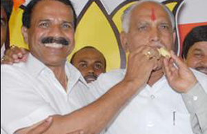 ಶಾಸಕರು, ಸಚಿವರೂ ಯಡ್ಡಿ ಕಾಲಿಗೆ ಬಿದ್ದರು: ಇದೇ ವೇಳೆ, ಮೊಗಸಾಲೆಗೆ ಆಗಮಿಸಿದ ಹಲವು ಶಾಸಕರು ಹಾಗೂ ಸಚಿವರು ಯಡಿಯೂರಪ್ಪ ಅವರನ್ನು ಕಂಡು ಕೊಂಚ ವಿಸ್ಮಿತರಾಗಿಯೇ ಅವರ ಬಳಿ ಆಗಮಿಸಿ ಕಾಲು ಮುಟ್ಟಿ ನಮಸ್ಕರಿಸಿದರು. ಈ ವೇಳೆಗೆ ತಮ್ಮ ಬಳಿ ಬಂದ ಬಂಧೀಖಾನೆ ಸಚಿವ ನಾರಾಯಣಸ್ವಾಮಿ ಅವರನ್ನು ಉದ್ದೇಶಿಸಿ 'ಜೈಲಿನಲ್ಲಿದ್ದಾಗ ಚೆನ್ನಾಗಿ ನೋಡಿಕೊಂಡೆ ಕಣಯ್ಯ ನೀನು' ಎಂದರು.