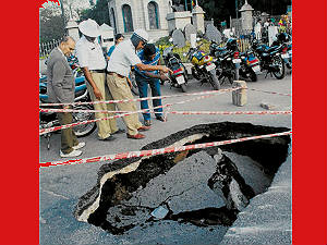 ನಿನ್ನೆ ಭಾನುವಾರ ಬೆಳಗ್ಗೆ 10.30ರ ಸುಮಾರಿಗೆ ಹೀಗೆಯೇ ಆಗಿದೆ. ಇದ್ದಕ್ಕಿದ್ದಂತೆ ರಸ್ತೆ ಕುಸಿತ ಸಂಭವಿಸಿ, ದೊಡ್ಡ ಹೊಂಡ (ಅಗೇವು?) ಸೃಷ್ಟಿಯಾಗಿದೆ. ವಾಹನ ಸವಾರರಿಗೆ ನಿಂತ ನೆಲವೇ ಕುಸಿದಂತಾಗಿದೆ. ಹಾಗಾಗಿ ಲಾಲ್ಬಾಗ್ ಸುತ್ತಮುತ್ತ ಈಗ ಡೇಂಜರ್ ಝೋನ್. ಜನ ಆತಂಕದ ಮಡುವಿನಲ್ಲಿದ್ದಾರೆ.