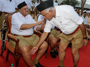 ಅತಿರಥ ಮಹಾರಥ ಗಣವೇಶಧಾರಿಗಳ ಸಮ್ಮುಖದಲ್ಲೇ ... ಇಷ್ಟೆಲ್ಲಾ ನಡೆಯುತ್ತಿದ್ದಾಗಲೇ ಮಾಜಿ ಮುಖ್ಯಮಂತ್ರಿ ಬಿ.ಎಸ್. ಯಡಿಯೂರಪ್ಪ ಅವರು ಸಭೆಯ ಗಣ್ಯರ ಮೊದಲ ಸಾಲಿನಲ್ಲಿಯೇ ಗಣವೇಷಧಾರಿಗಳಾಗಿ ಆಸೀನರಾಗಿದ್ದರು. ಮೌನಕ್ಕೆ ಶರಣಾಗಿ ಎಲ್ಲವನ್ನೂ ಆಲಿಸಿದರು ಎಂದು ಹೇಳಲಾಗಿದೆ. ಅರವಿಂದರಾವ್ ದೇಶಪಾಂಡೆ, ಖಗೇಶನ್ ಪಟ್ಟಣಶೆಟ್ಟಿ ವೇದಿಕೆಯಲ್ಲಿದ್ದರು.