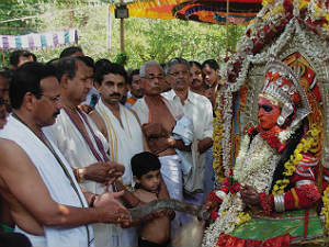 ಹೀಗೆ ಮುಖ್ಯಮಂತ್ರಿ ಡಿವಿ ಸದಾನಂದ ಗೌಡ- ಡಾಟಿ ದಂಪತಿಗೆ ಆಭಯ ನೀಡಿರುವುದು ಸದಾನಂದರ ಹುಟ್ಟೂರಾದ ದೇವರಗುಂಡ ಬೆಳ್ಳಿಪ್ಪಾಡಿ ತರವಾಡಿನ ಧರ್ಮ ದೈವ ರುದ್ರ ಚಾಮುಂಡಿ!