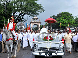 ಸಭೆ ಆರಂಭವಾಗುವುದಕ್ಕೂ ಮುನ್ನ ಧರ್ಮಾಧಿಕಾರಿ ವೀರೇಂದ್ರ ಹೆಗ್ಗಡೆ ಅವರನ್ನು ಅಲಂಕೃತ ಆನೆಗಳು, ಕುದುರೆಗಳು, ಬುಲೆಟ್ ಕಾರುಗಳು, ಸ್ಕೌಟ್ಸ್, ಸ್ಕೂಲ್ ಬ್ಯಾಂಡ್, ಮೈಸೂರು ಬ್ಯಾಂಡ್ ಸೆಟ್ ಮತ್ತು ಪಾಶ್ವಿಮಾತ್ಯ ಶೈಲಿಯಲ್ಲಿ ಕಂಗೊಳಿಸುತ್ತಿದ್ದ ಪದಾತಿದಳದ ಸಿಬ್ಬಂದಿ ಶ್ರೀ ಕ್ಷೇತ್ರ ಧರ್ಮಸ್ಥಳದ ಮುಖ್ಯದ್ವಾರದಿಂದ ಅದ್ದೂರಿ ಮೆರವಣಿಗೆಯಲ್ಲಿ ಸ್ವಾಗತಿಸಿದರು. ಸೌರದೀಪಗಳು ಮತ್ತು LED ದೀಪಗಳು ಮೆರವಣಿಗೆಯನ್ನು ಮತ್ತಷ್ಟು ಪ್ರಕಾಶಮಾನವಾಗಿದ್ದು ವಿಶೇಷವಾಗಿತ್ತು.